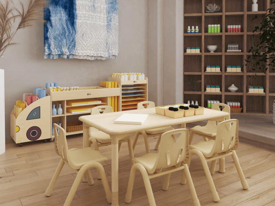 Rooted in the principle of “Simplified Order,” this series is designed to create bright, pure spaces where children can learn calmly and grow with autonomy. The warm texture of maple wood grain paired with minimalist light wood tones establishes a clean, orderly environment that harmonizes a quiet atmosphere with scientific zoning, supporting children's concentration and exploratory spirit.