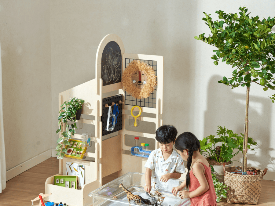 Open displays paired with labeled Hikilong storage boxes allow children to make autonomous choices while maintaining a sense of system and structure. The space achieves high-efficiency storage while embodying the scientific principle that "order itself is educational."