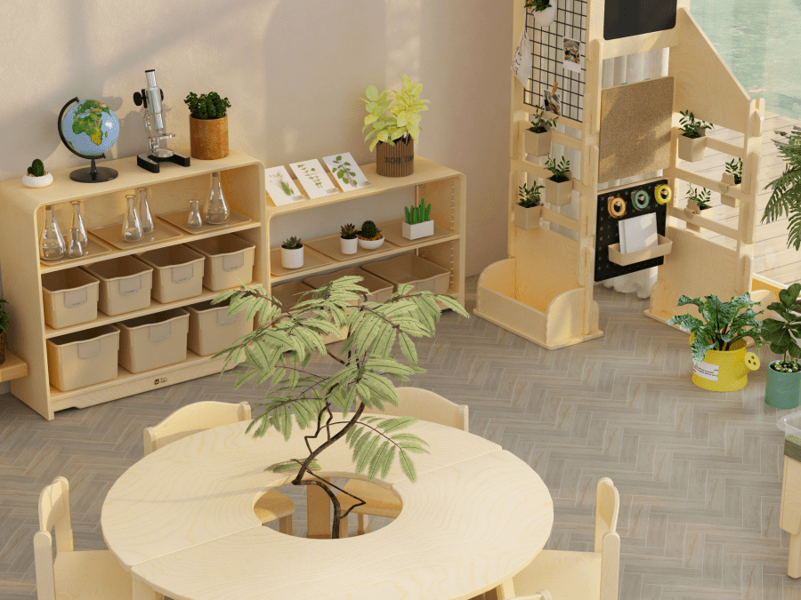 The layout allows multiple small groups to conduct observations and discussions simultaneously. Through role division and cooperation, children learn to record data, compare findings, and articulate ideas, forging a genuine team-based scientific experience.